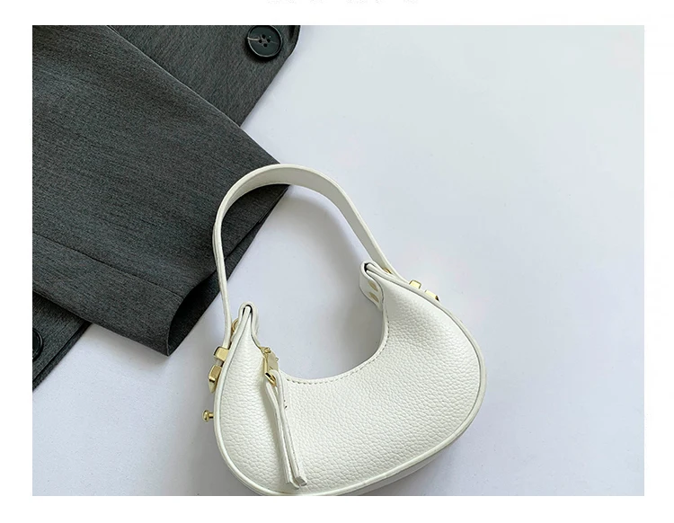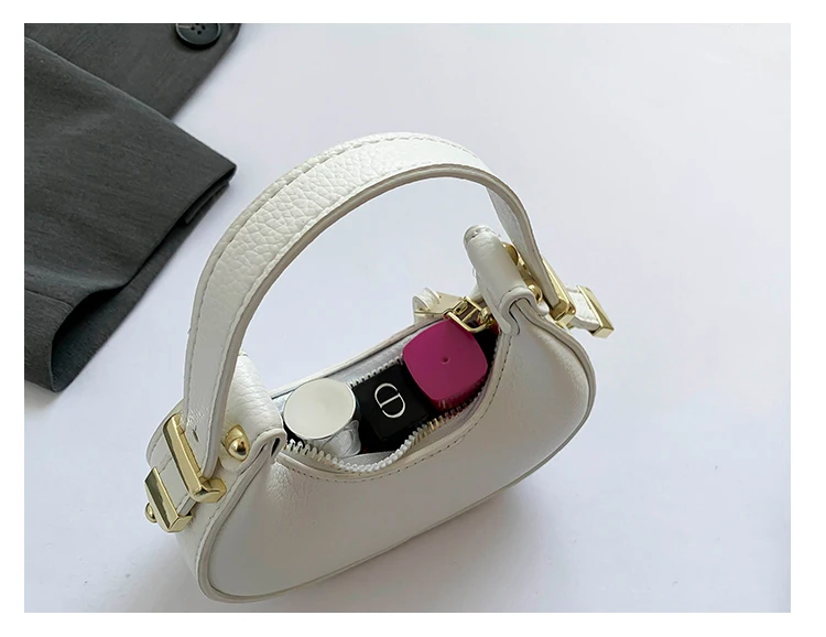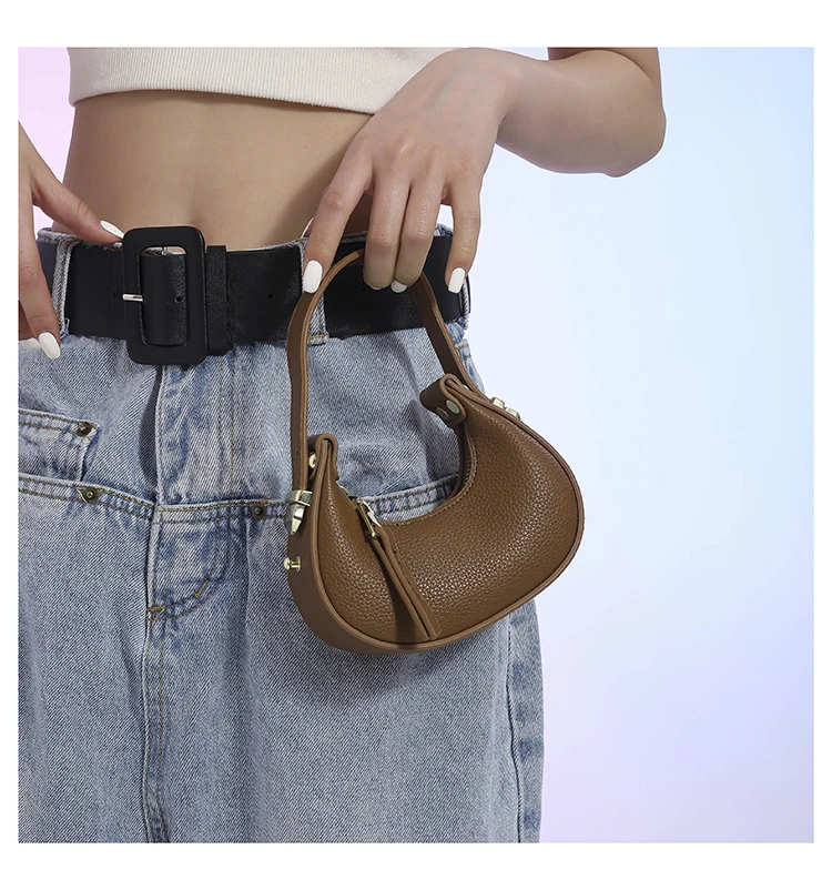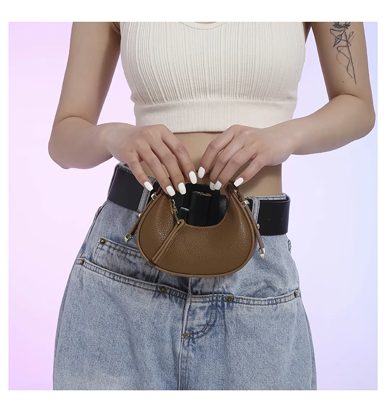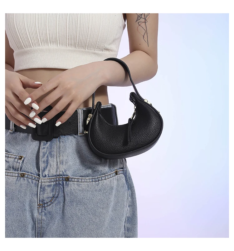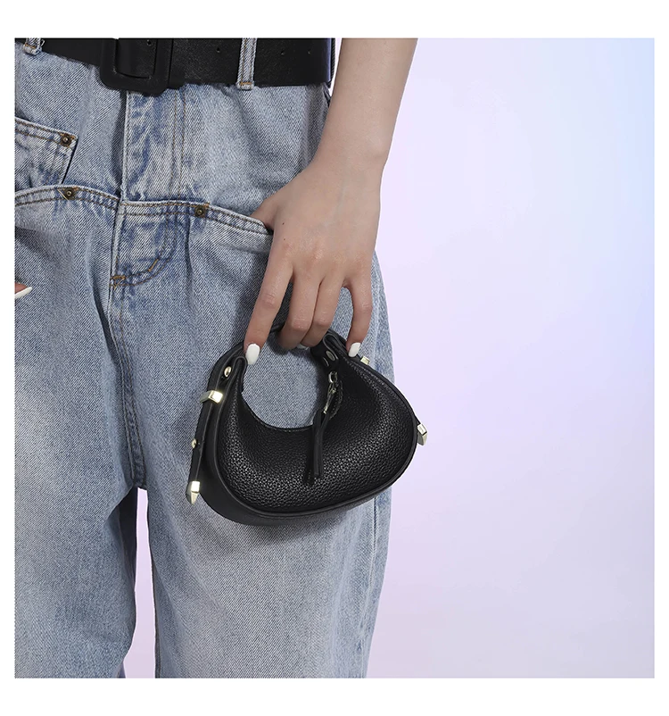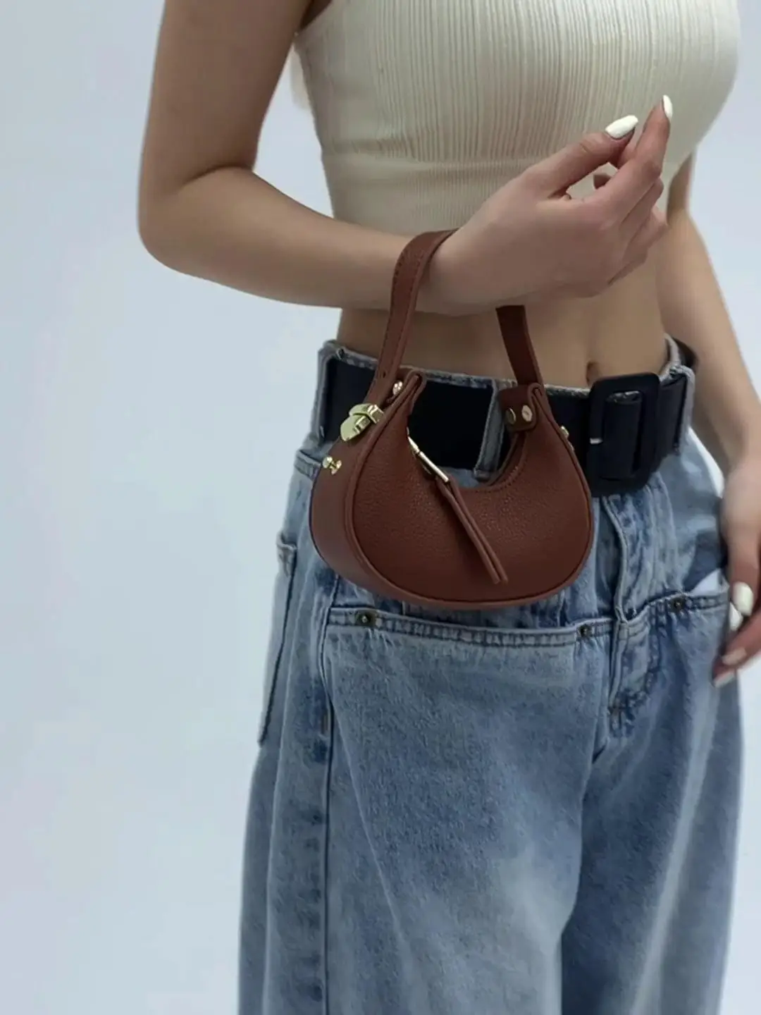 Textured Mini Half Moon Bag 2024 Chic Versatile Soft Leather Lipstick Handbags Girl's Cute Purse