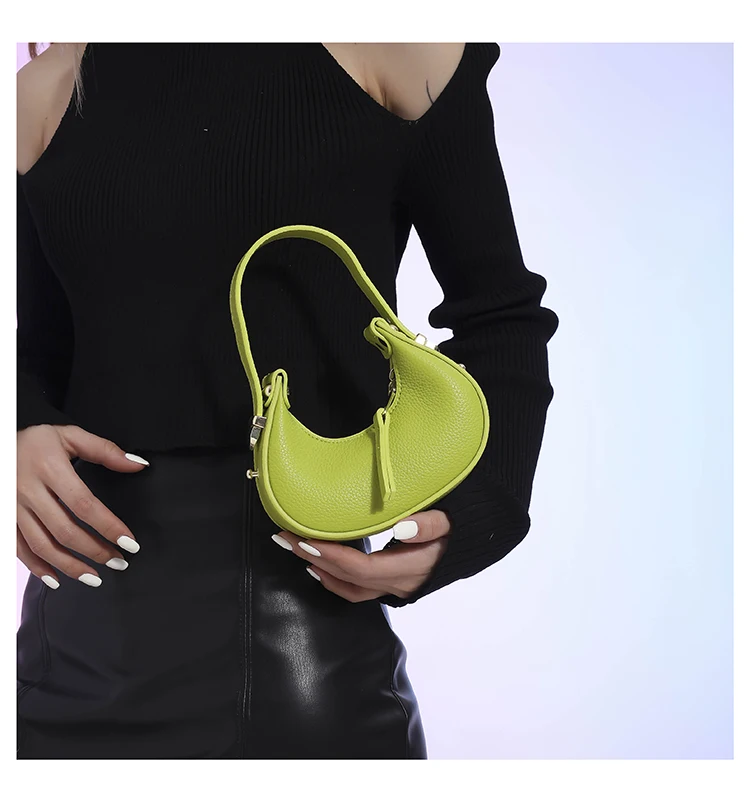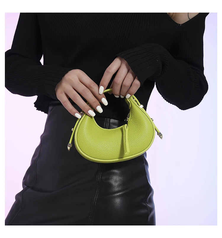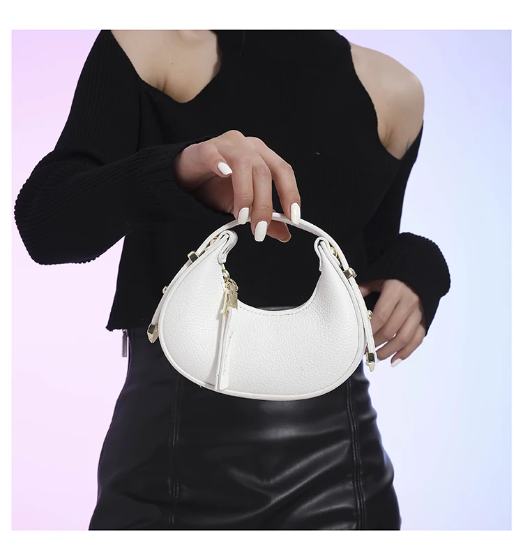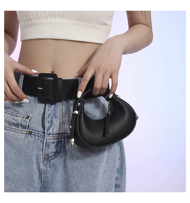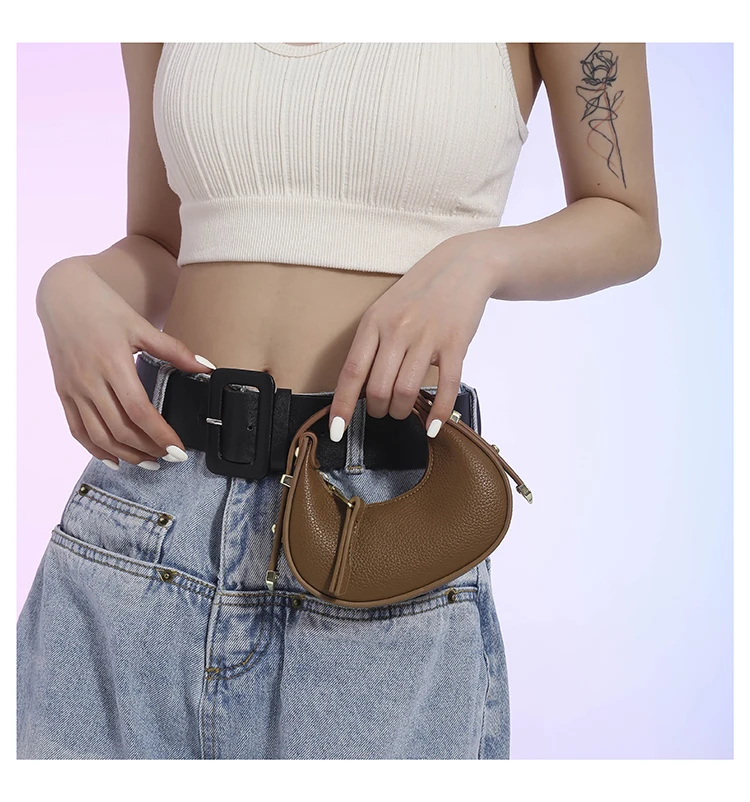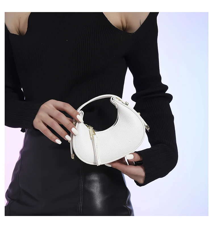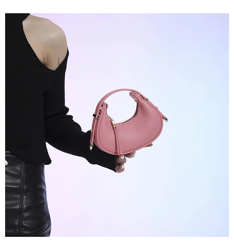 Textured Mini Half Moon Bag 2024 Chic Versatile Soft Leather Lipstick Handbags Girl's Cute Purse