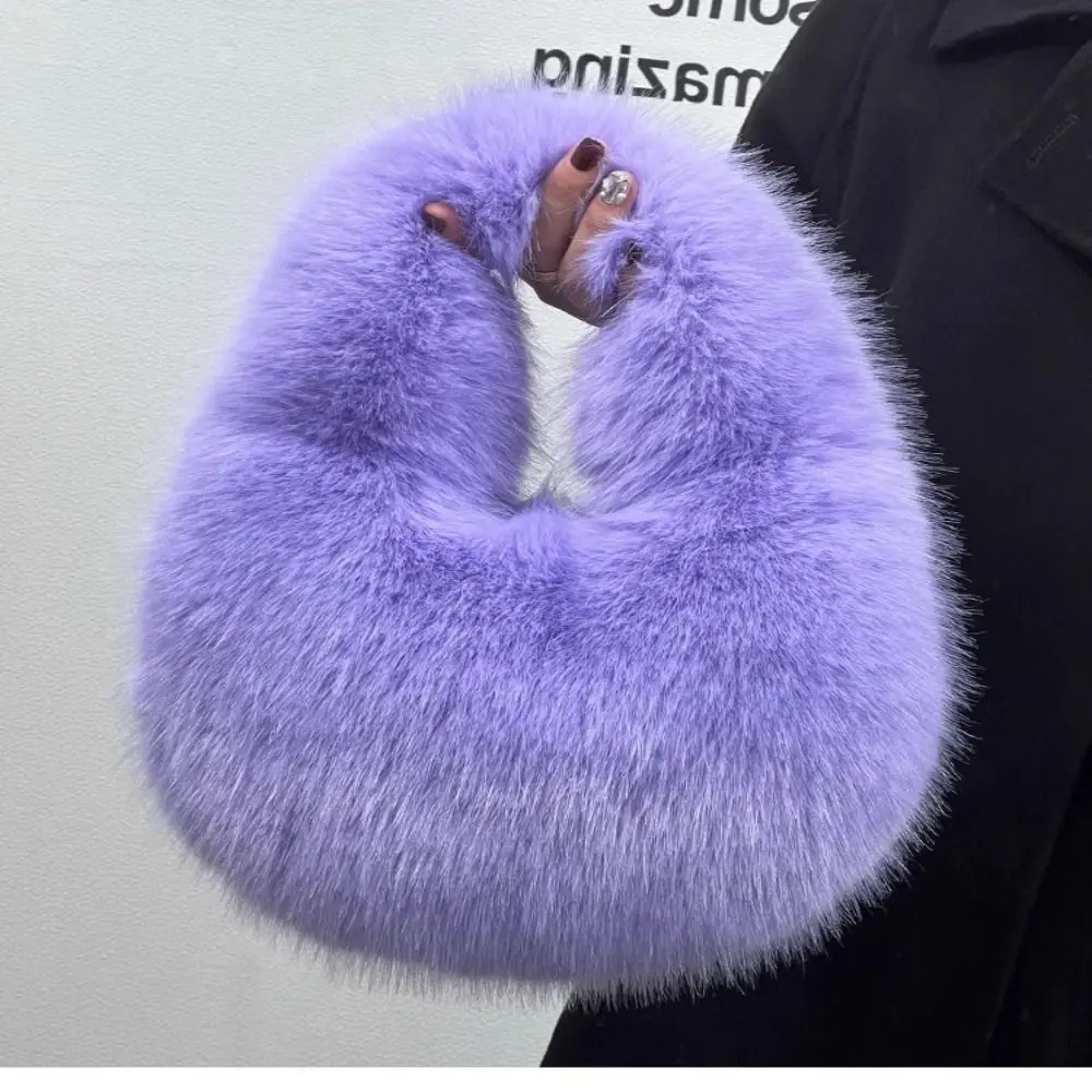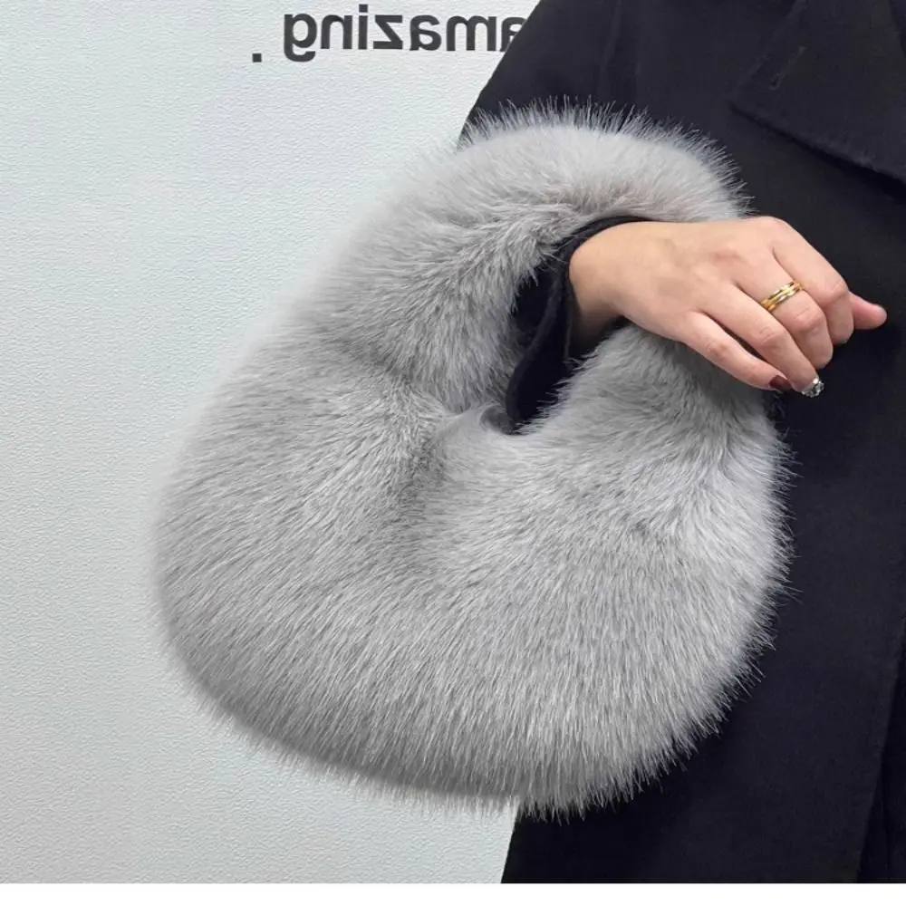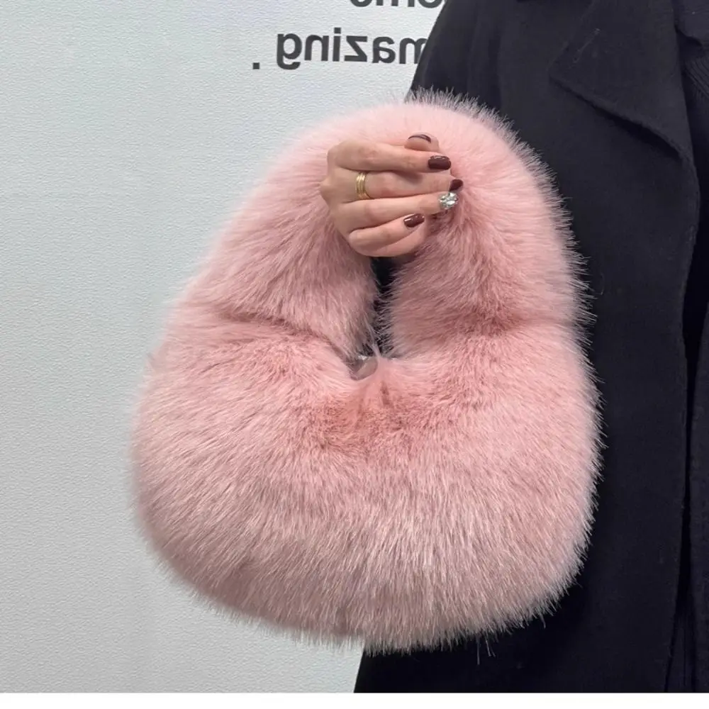 Luxury Soft Plush Half Moon Bag Fluffy Party Clutch Bag Lady Handbags Female Winter Purse Faux Fur Casual Tote Bag